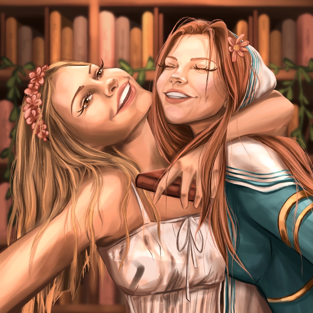 In this product, you will receive a print of a drawing that I drew of Elain and Gwyn from the book series A Court of Thorns and Roses, by Sarah J. Maas.